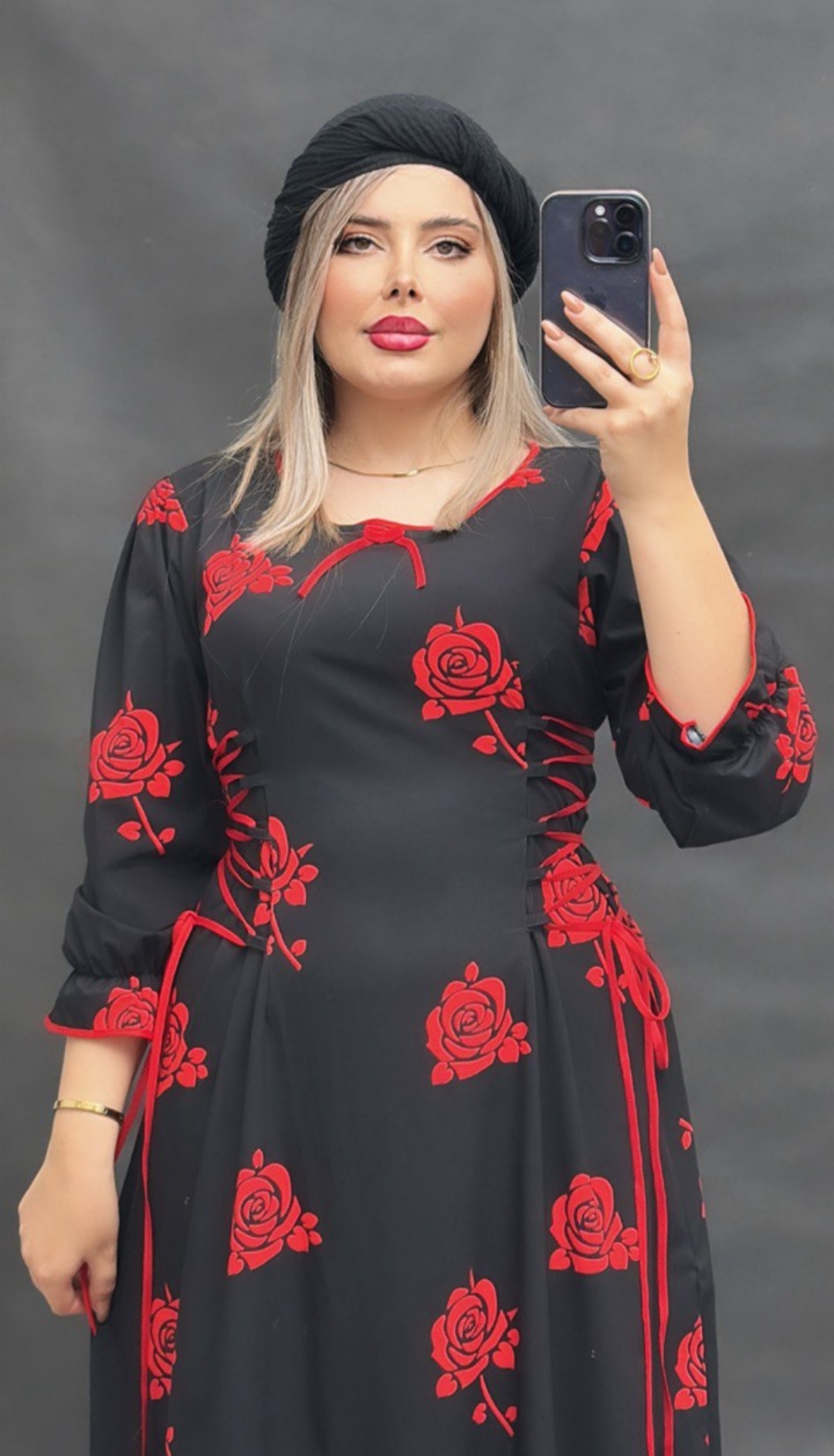 پیراهن گل رز کرپ بوگاتی درجه یک
