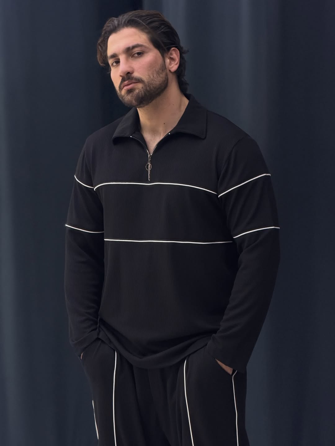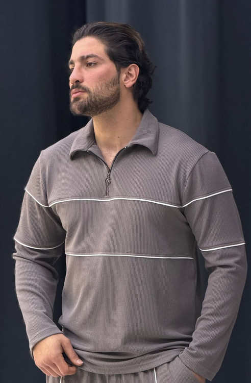 ست کامل نیم زیپ مغزی دوزی دوخت شرکتی پارچه وارداتی