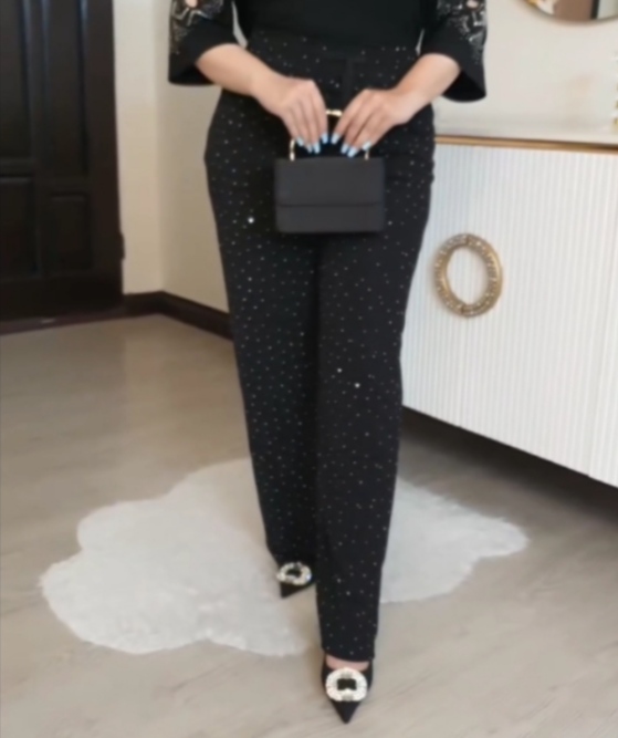شلوار دامنی وارداتی ترک اصل پر نگین بدون ریزش قیمت درجه یک تن خور بسیار عالی قد ۱۰۰ کاملا کاشی بدون نیاز به اتو کشی