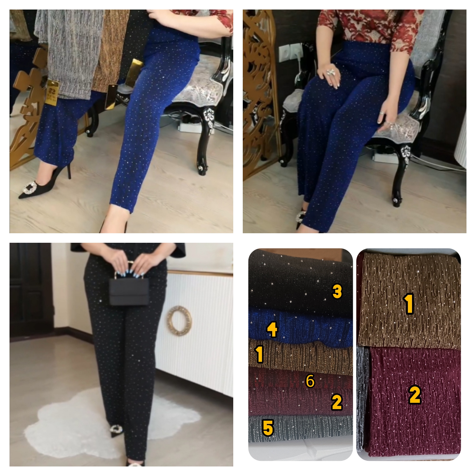 یه کار خاص وخفن شلوار پلیسه نگینی وارداتی ترک شلوار دامنی وارداتی ترک اصل پر نگین بدون ریزش درجه یک تن خور بسیار عالی کشسانی دارد بدون نیاز به اتو کشی فری سایز با کشسانی بالا ۳۶تا ۴۸ قد ۱۰۰ رنگبندی مشکی/ آبی /قرمز /کالباسی /طلائی/ نقره ای رنگبندی رو میتونید تو قسمت هایلات شلوار ببینید تومن ثبت /سایت/ ولینگهای موجود دربیو ترک#وارداتی#برند